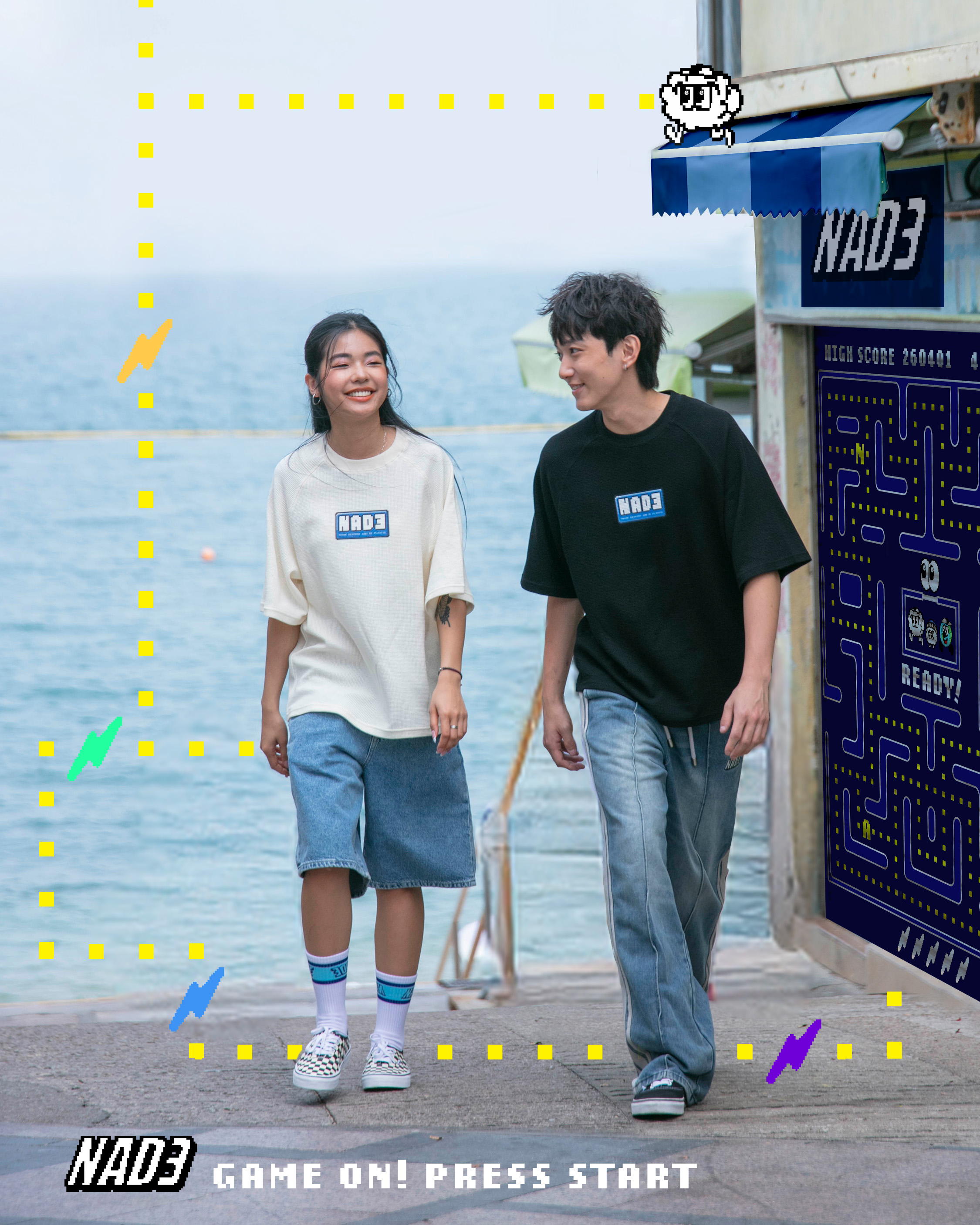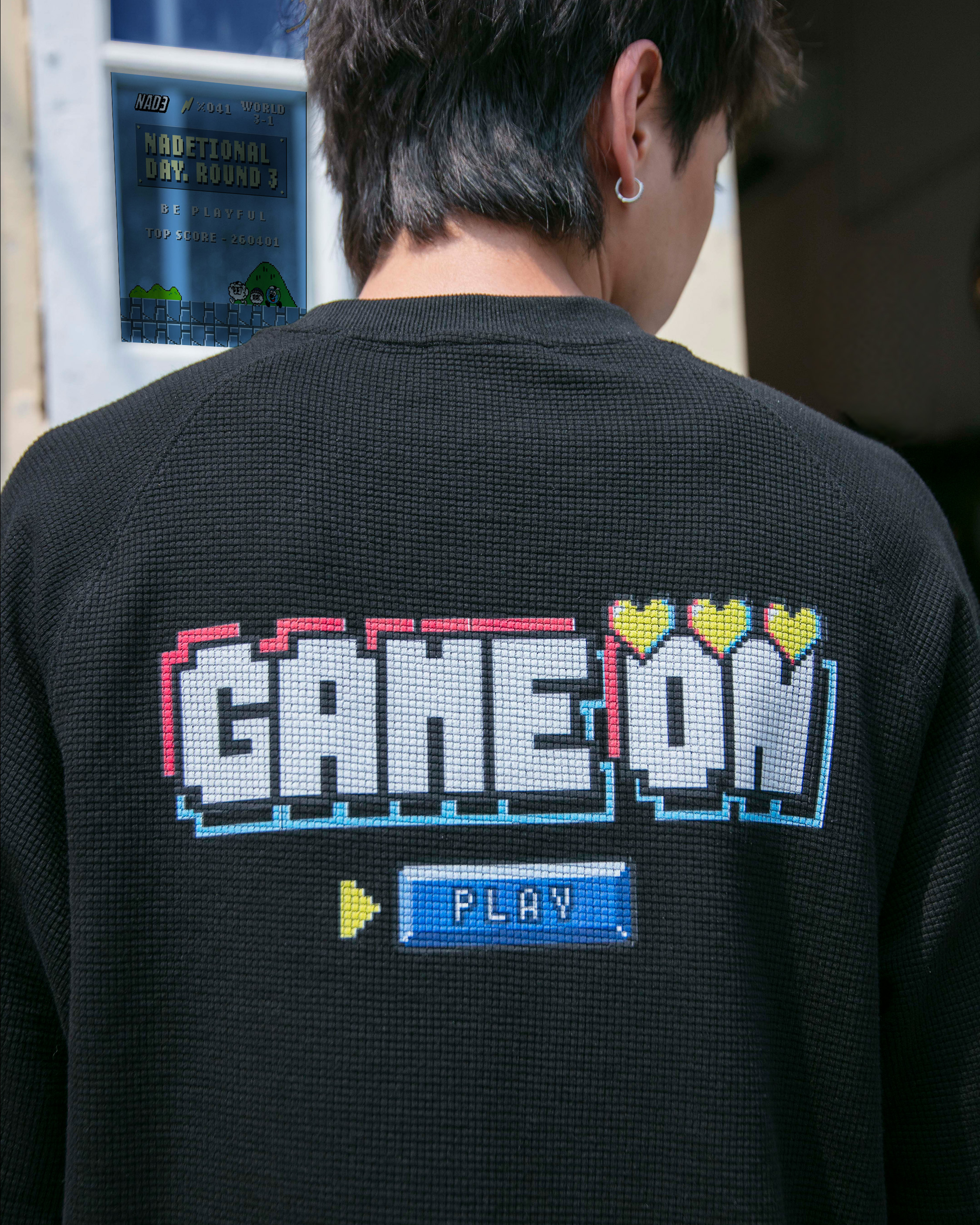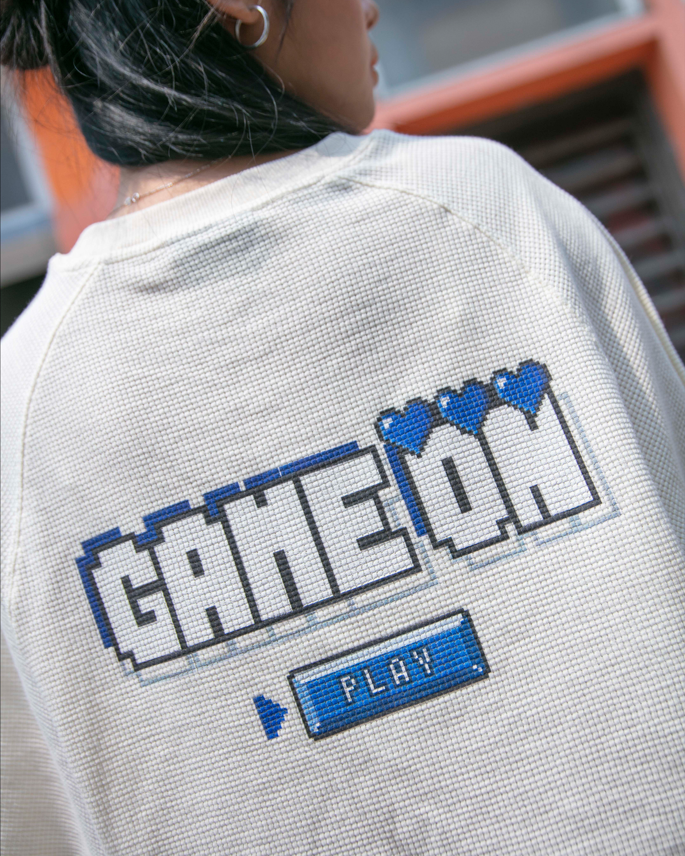 GET READY TO PRESS PLAY WITH THE NADE GAME ON WAFFLE TEE. MADE FROM PREMIUM WAFFLE FABRIC, THIS PIECE BRINGS TOGETHER A PLAYFUL BLEND OF CHIC AND COZY VIBES. THE FRONT SHOWCASES A PIXEL NAD3 PATCH, WHILE THE BACK BOLDLY DECLARES “GAME ON” WITH A PLAYFUL “PLAY” BAR UNDERNEATH — HIT PLAY AND LET OUR NADE FAM KICK OFF YOUR STYLE ADVENTURE.